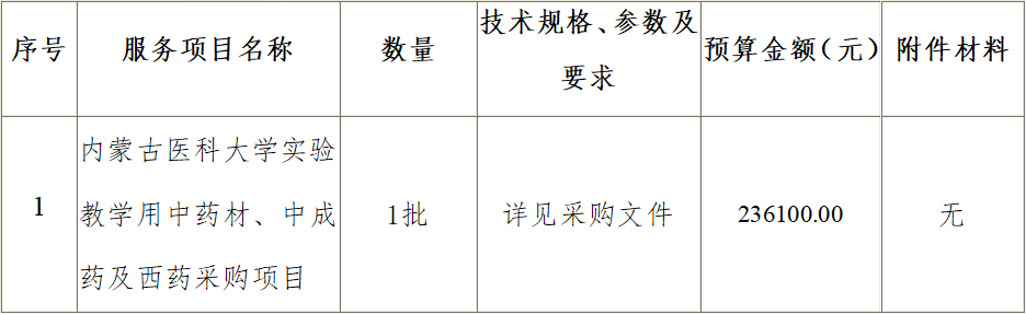 1.项目名称:内蒙古医科大学实验教学用中药材、中成药及西药采购项目