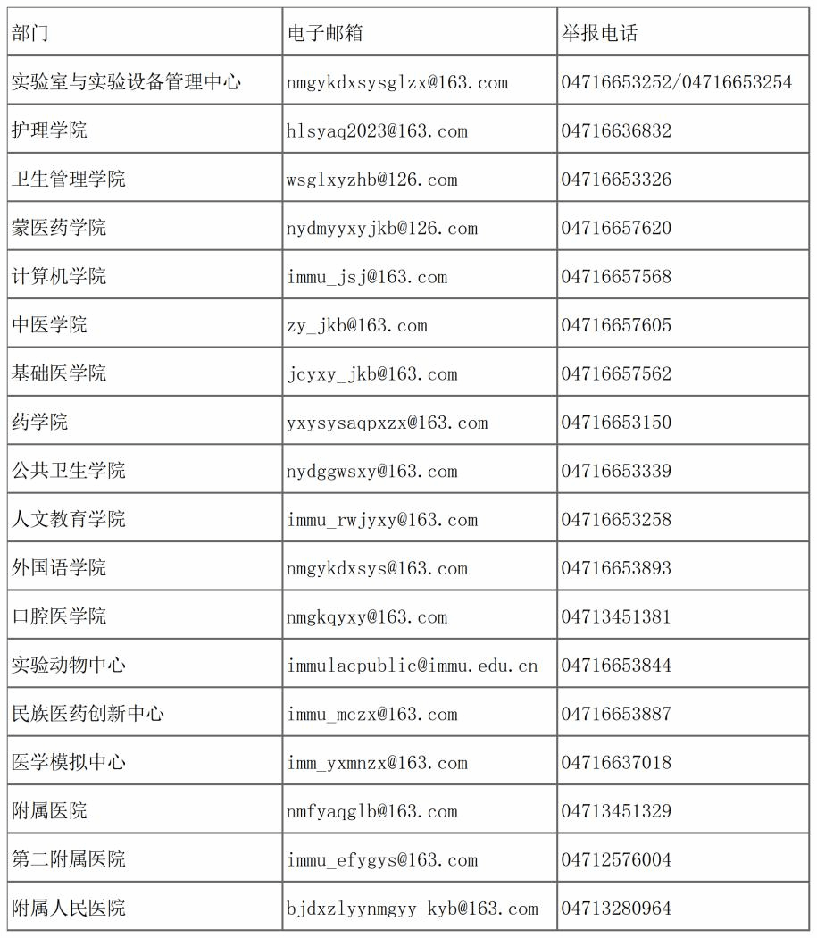 学校实验室安全隐患举报邮箱:nmgykdxsysglzx@163@.com